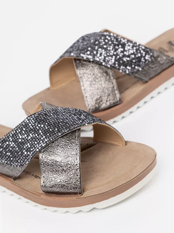 Metalinio Blizgesio Moteriškos Šlepetės su Balto Pado Dydžiu – Stiliaus ir Komforto Tobula Harmonija