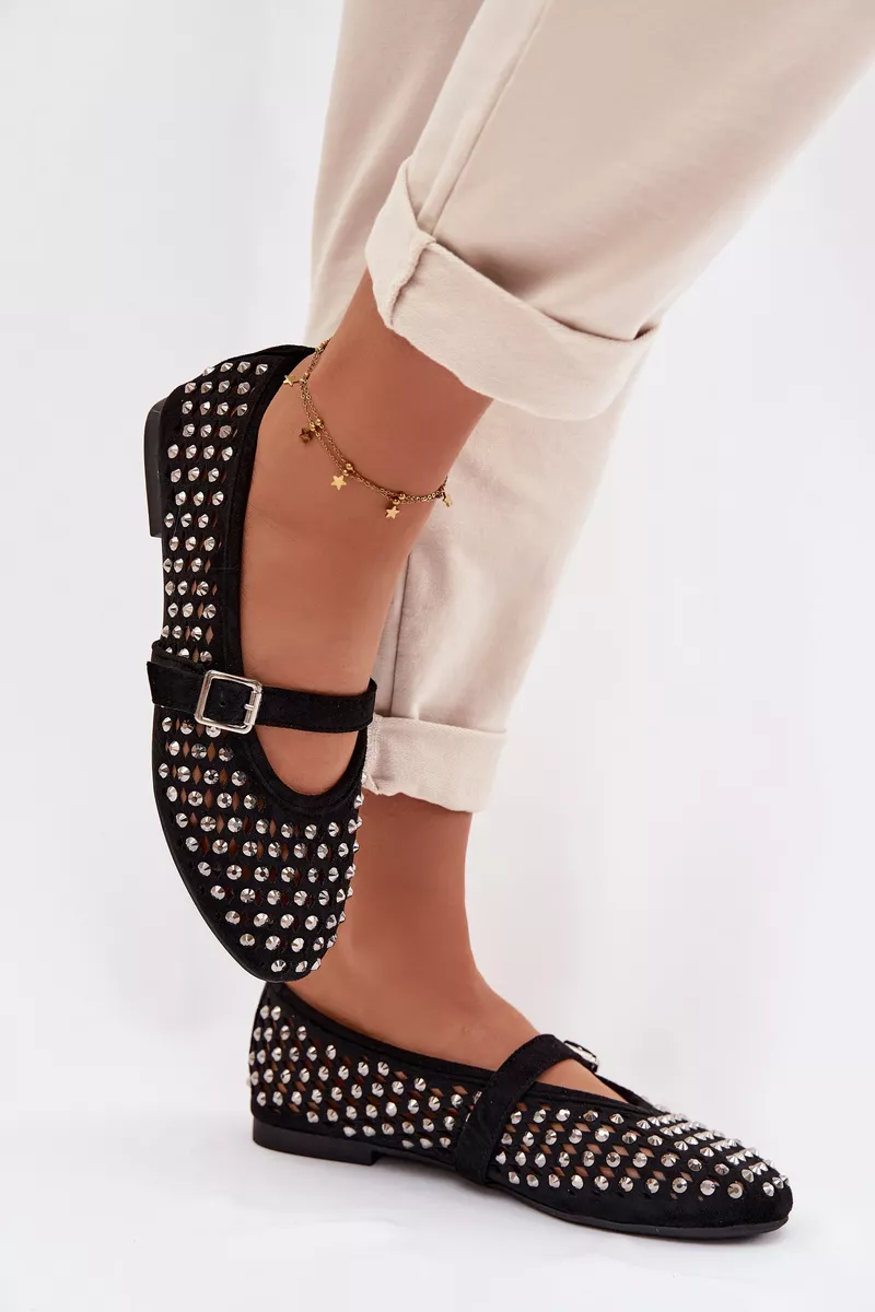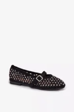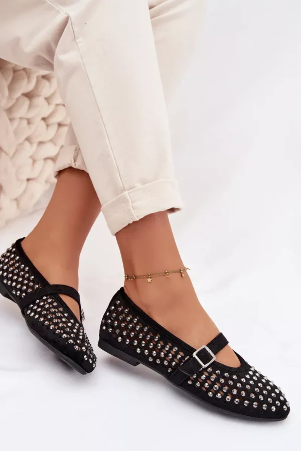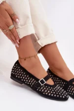 Šios elegantiškos damskės balerinos su ažūriniais detalėmis ir kristalais yra puikus pasirinkimas ieškant komforto ir stiliaus sintezės. Pagamintos iš aukštos kokybės medžiagų, jos užtikrina ilgaamžiškumą ir patogumą avėjimo metu. Balerinų juoda spalva yra universali ir lengvai derinama su įvairiausias spalvų drabužiais, todėl jos tinka tiek kasdieniniam, tiek iškilmingam vakarui.