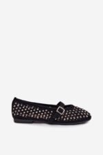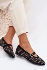 Moteriškos ekologiškos suede balerinos yra stilingas pasirinkimas šiltoms dienoms. Akmens cirkoniu puoštas ažūrinis batelių viršus suteikia jiems subtilų blizgesį. Užsegimas ant pėdos vidurio užtikrina gerą prigludimą ir pabrėžia moterišką modelio charakterį. Apvalūs batelių noseliai papildo klasikinį stilių, todėl balerinos puikiai tinka tiek kasdieniam, tiek elegantiškesniam aprangos stiliui. Renkantis dydį, prašome remtis dydžių lentele.