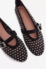 Šių damskių balerinų vyšnia yra jų unikalus ažūrinių detalių dizainas, kuris suteikia joms subtilų ir stilingą išskirtinumą. Kristalai, išdėstyti ant paviršiaus, prideda švytėjimą, kuris puikiai tarpusavyje derinasi su klasikinėmis balerinų linijomis. Su dirželiu per pėdą, jos ne tik atrodo elegantiškai, bet ir suteikia papildomą stabilumą ir saugumą avėjimui.