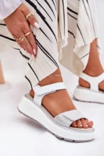 Damski odiniai sandalai su platforma ir kulnu