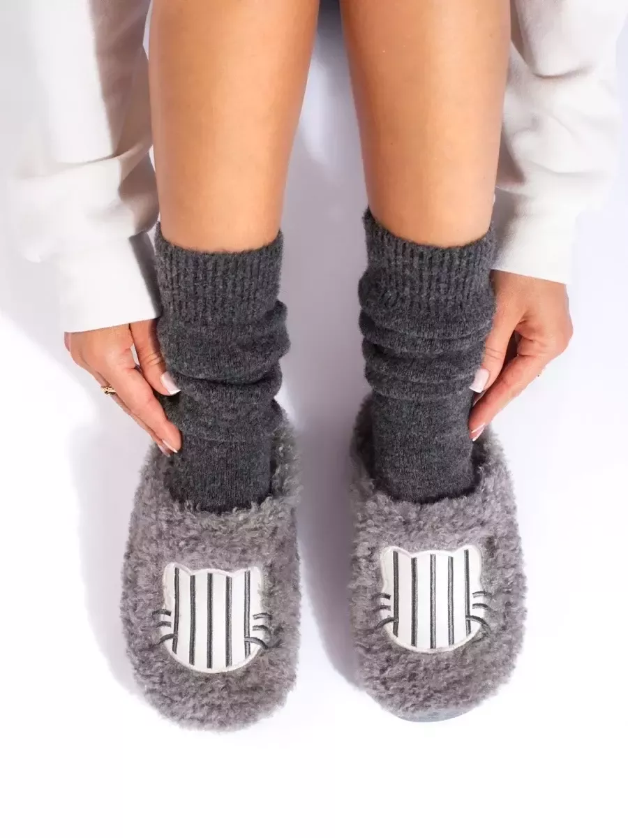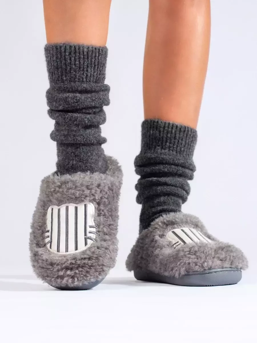 Moteriškos pilkos kailinės šlepetės