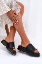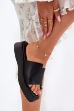Moteriškos ekoodos šlepetės yra elegantiškas ir patogus pasirinkimas šiltoms dienoms. Platforma suteikia lengvumą ir stabilumą visą dieną. Šis modelis išsiskiria subtiliu, dekoratyviniu akcentu, kuris suteikia jam ypatingo žavesio. Minkštas vidpadis garantuoja komfortą, todėl šios šlepetės yra puikus pasirinkimas kasdienėms stilizacijoms. Jos puikiai dera su vasariniais drabužiais, derinant funkcionalumą su madinga išvaizda. Renkantis dydį, vadovaukitės dydžių lentele.