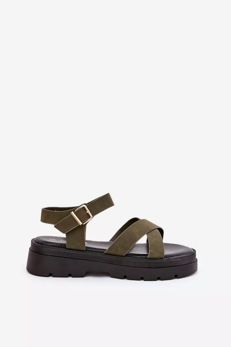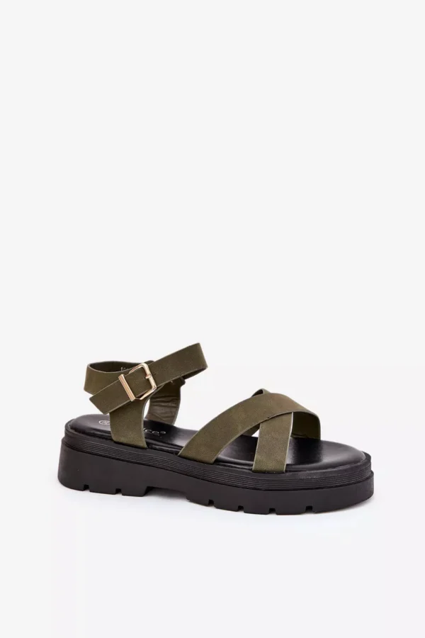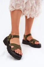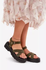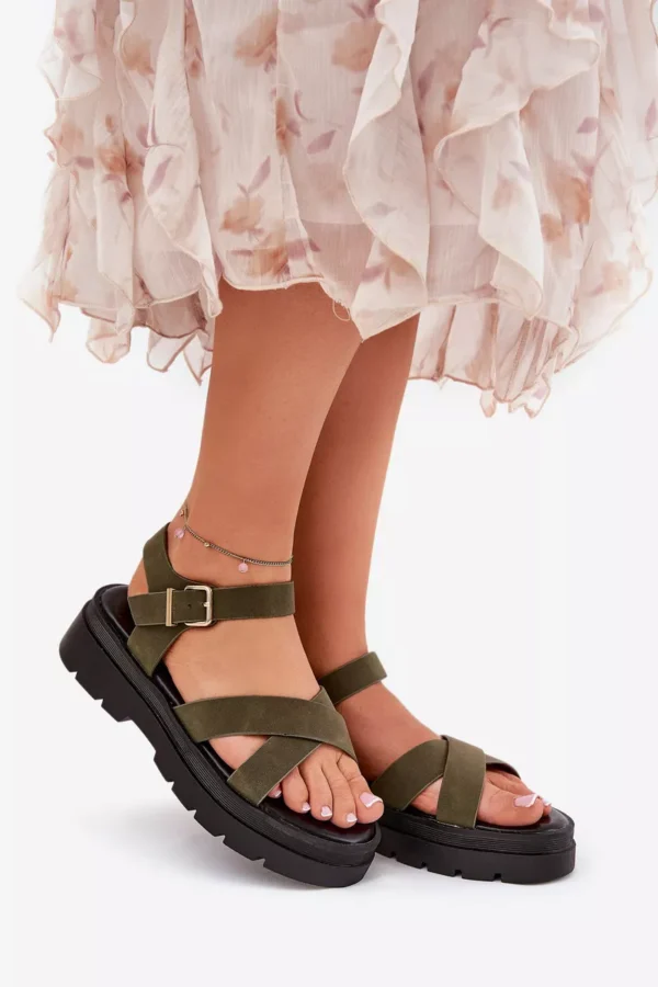 Šios elegantiškos moteriškos platforminės sandalų sukurta iš aukštos kokybės ekologiškos odos tamsiai žalios spalvos. Jų modernus dizainas su spindinčiomis susikertančiomis juostomis praturtins bet kokią jūsų aprangą. Platforminis padas ne tik papildys jūsų stiliaus arsenalą, bet ir užtikrins visos dienos komfortą.