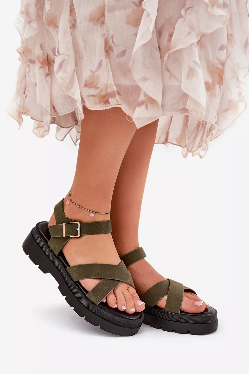 Moteriškos platforminės sandalai iš ekologiškos odos tamsiai žalios Gevinniser