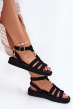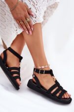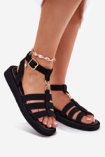 Moteriški sandalai pagaminti iš eko zomšo. Sumontuoti ant subtilaus platformos, jie užtikrina patogumą ir stabilumą visą dieną. Sagtelė su reguliuojamu dirželiu leidžia idealiai priglusti prie pėdos. Priekyje yra subtilus auksinis detalė, sujungiantis dirželius. Minkštas vidpadis užtikrina komfortą vaikščiojant. Puikiai tinka tiek prie suknelių, tiek prie kelnių, sukuriant stilingą įvaizdį bet kokiai progai. Rinkdamiesi dydį, prašome vadovautis dydžių lentele.