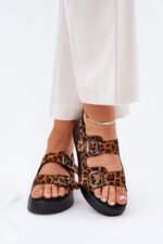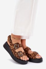Moteriškos platformos ir pleišto sandalai su sagtimis, leopardo rašto rudos spalvos “Genorre”