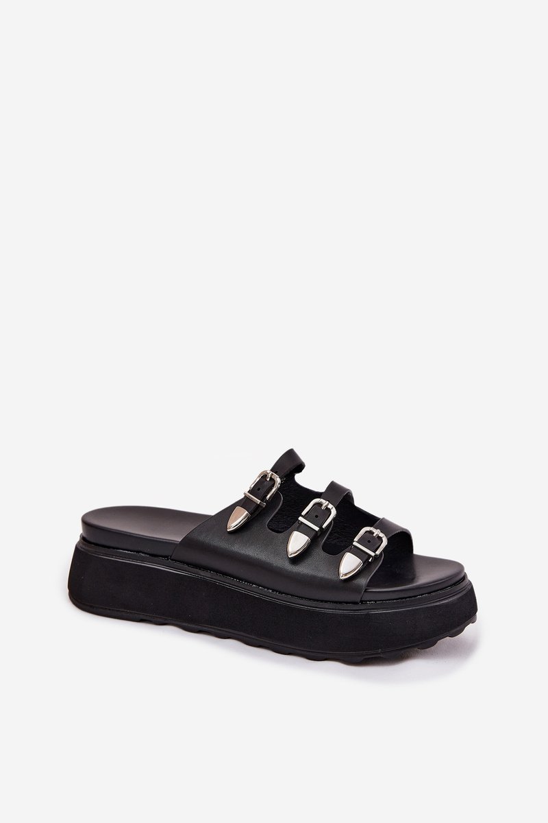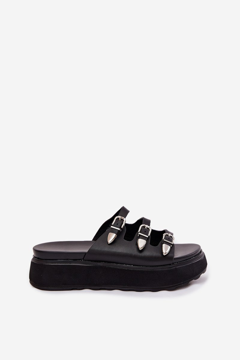 Moteriškos eko odos šlepetės ant platformos – tai komforto ir stiliaus derinys. Modelis išsiskiria trimis plonais, reguliuojamais dirželiais su sagtimis, leidžiančiais puikiai priglusti prie pėdos. Minkštas vidpadis užtikrina patogumą visą dieną, o modernus dizainas leidžia šlepetėms puikiai derėti prie vasariškų stilių. Idealiai tinka kasdienai, derinant funkcionalumą su madinga išvaizda. Renkantis dydį, prašome vadovautis dydžių lentele.