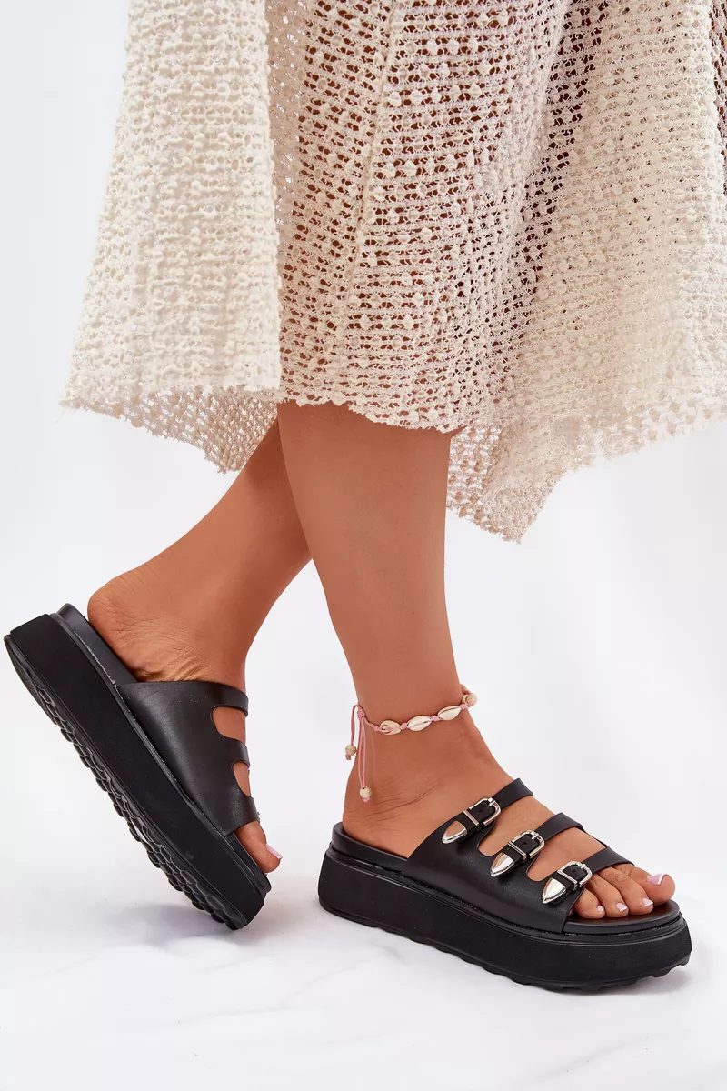 Sandalai su platforma yra ne tik madingas pasirinkimas, bet ir patogus. Su juoda spalva, kaspainiais puošti sandaliai dera prie įvairių aprangos stilių, suteikiant elegancijos ir žavesio. Jie yra tinkami kasdieniam naudojimui arba ypatingoms progoms.