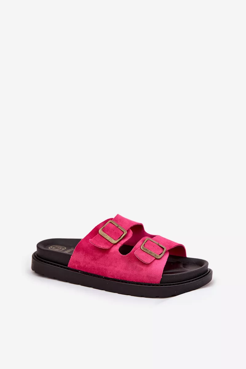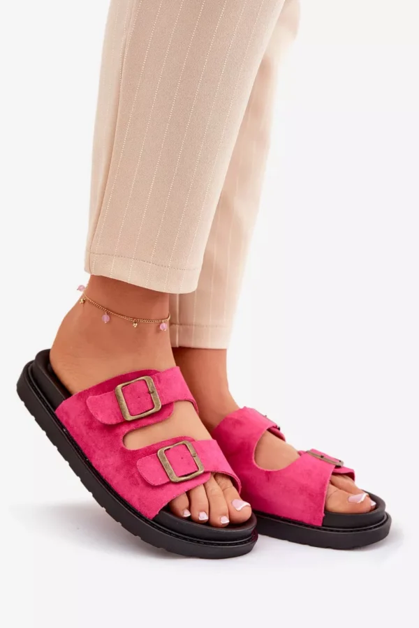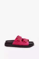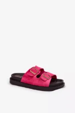 Fuksijos spalvos damų sandalai su platforma – tai ne tik stilingas, bet ir patogus pasirinkimas. Pagaminti iš draugiško aplinkai zomšo, šie sandalai sukurti taip, kad derėtų komfortas ir modernus dizainas. Katariamos juostos garantuoja puikų prigludimą prie kojos, o kontūrinė pado forma užtikrina patogumą visą dieną. Puikiai tinka vasaros dienoms, šie sandalai dera tiek prie suknelių, tiek prie kelnių.