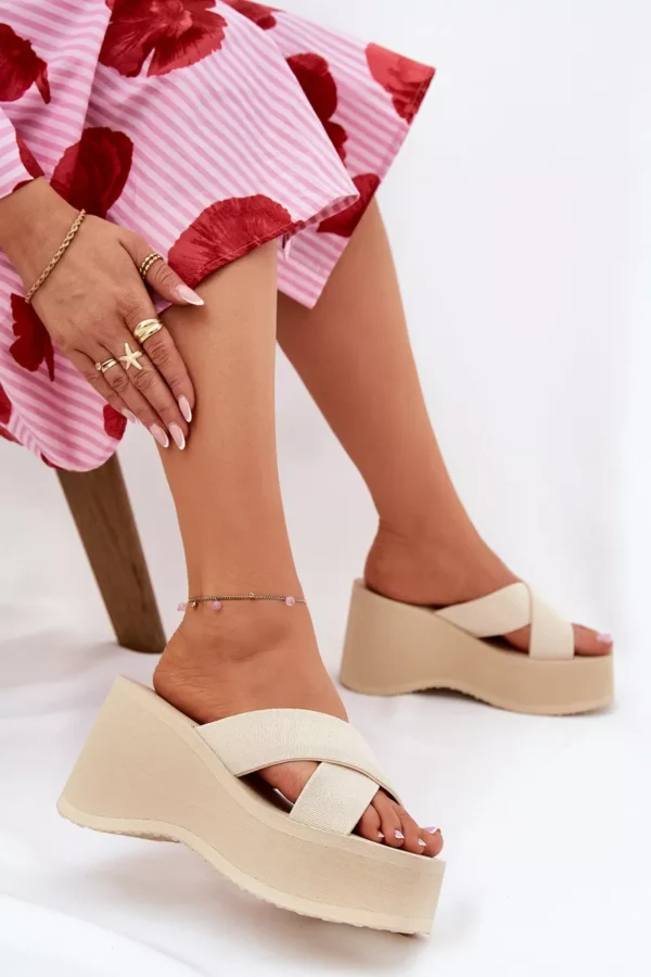 Damski sandalai ant kulno ir platformos – Beige Sevolee