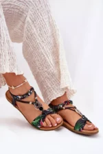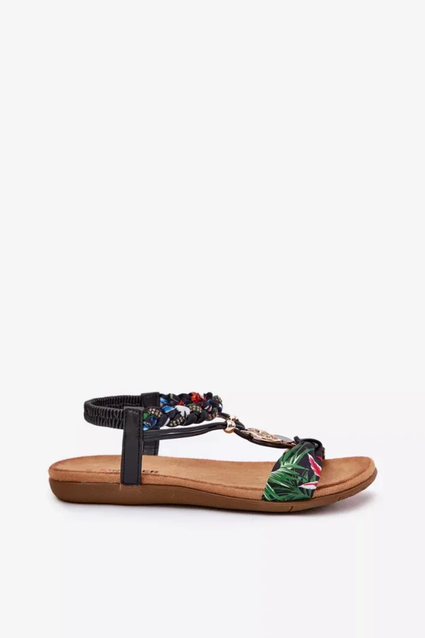 Patogios ir stilingos damų plokščiapadės sandalės su elastinga pintine juostele ir dekoratyviais elementais. Šie sandalai pagaminti iš aukštos kokybės medžiagų, kurių dėka galima mėgautis komfortu net ir pačiomis šilčiausiomis dienomis. Puikus pasirinkimas tiems, kurie ieško elegancijos ir patogumo viename gaminyje.