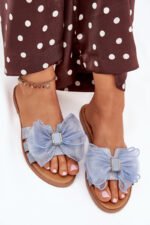 Moteriskos šlepetės, pagamintos iš tekstilinės medžiagos, su plokščiu kulnu, puikiai tiks kasdienai. Jos išsiskiria tiuliniu kaspineliu. Idealiai tinka vasaros stilizacijoms, puikiai dera su suknelėmis, sijonais ar kelnėmis, derinant paprastumą su subtiliu žavesiu. Pasirinkdami dydį, prašome vadovautis dydžių lentele.