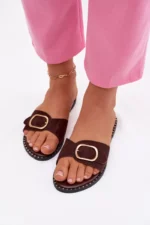 Stilingos moteriškos sandalės su plokščiu kulnu – patogus ir elegantiškas pasirinkimas šiltoms dienoms. Ekologiškos odos dirželis, papuoštas aukso spalvos sagtimi, suteikia bateliams išskirtinį stilių ir yra akį traukiantis akcentas. Dėl paprasto dizaino šie sandalai puikiai tinka tiek kasdieniam, tiek elegantiškesniam vasaros aprangos ansambliui. Renkantis dydį, prašome remtis dydžių lentele.