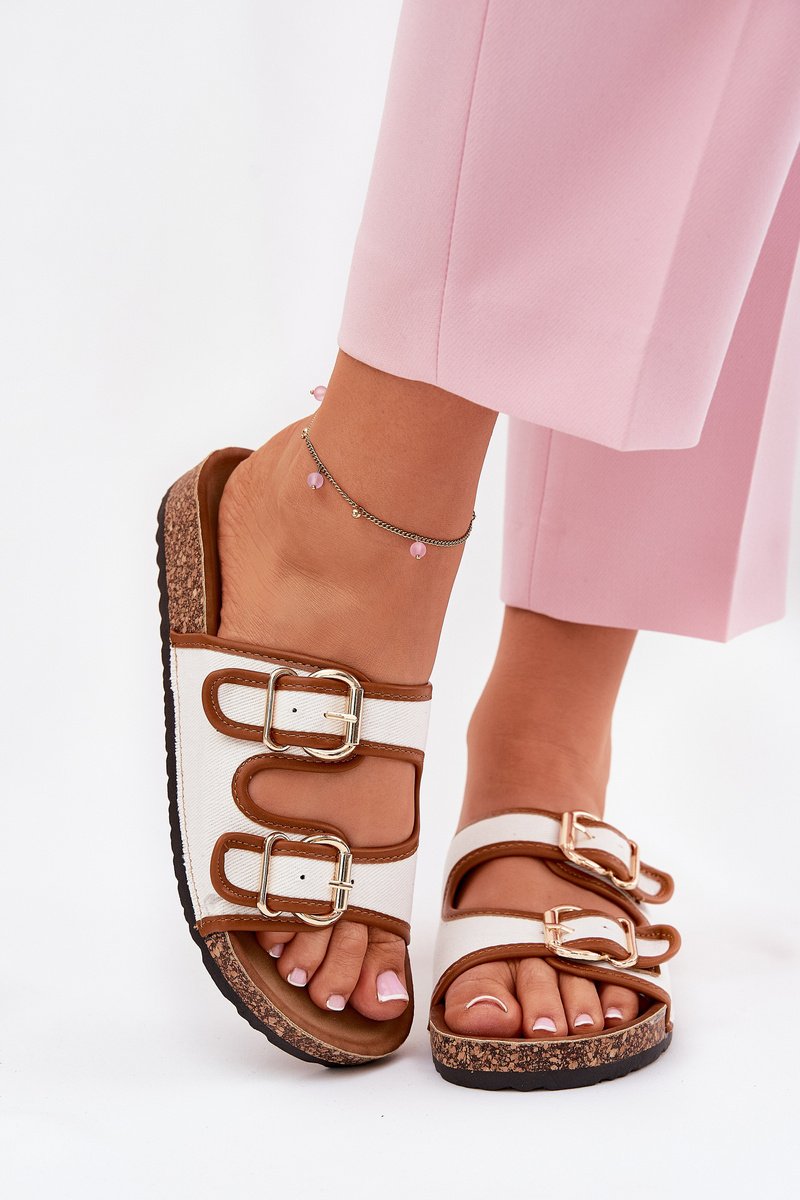 Moteriškos šlepetės, pagamintos iš tekstilinės medžiagos, yra puikus pasirinkimas karštoms dienoms. Du dirželiai su sagtimis leidžia lengvai pritaikyti šlepetes prie kojos, o kamštinė platforma suteikia lengvumo ir modernios išvaizdos. Profiliuotas vidpadis užtikrina patogumą visą dieną, todėl šios šlepetės yra puikus pasirinkimas pasivaikščiojimams ar atostogų kelionėms. Patogumo ir stiliaus derinys viename! Pasirinkdami dydį, prašome vadovautis dydžių lentele.