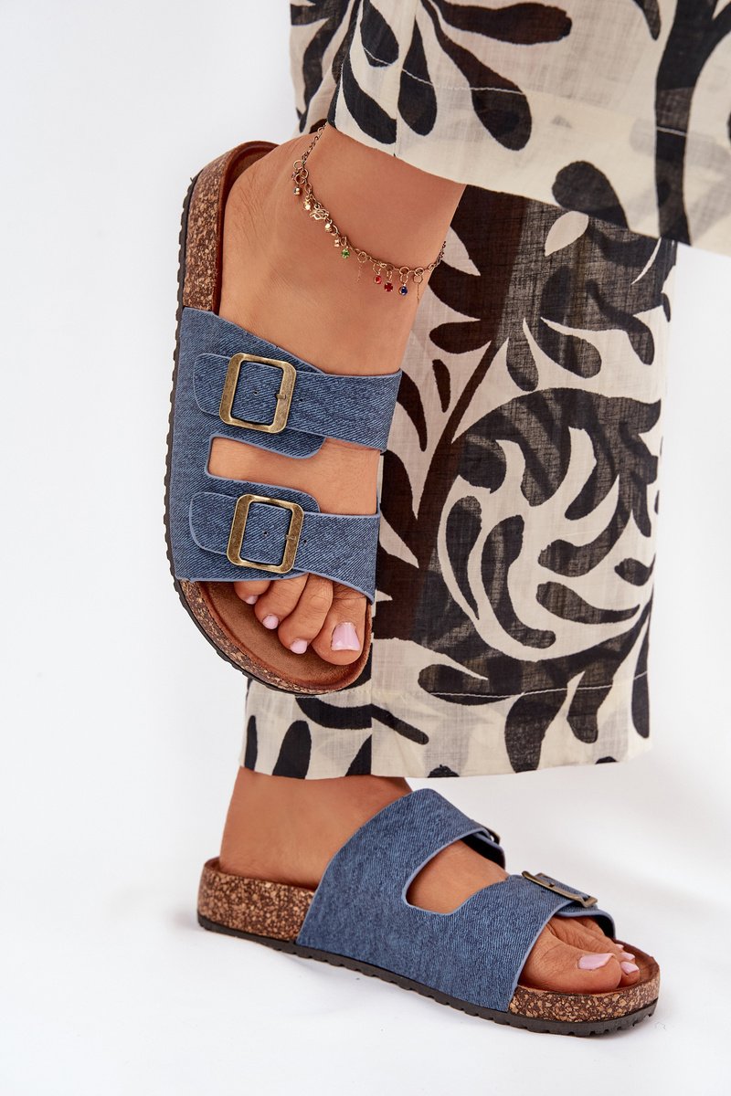 Moteriškos šlepetės ant kamštinio platformos su sagtimis Tamsiai džinsinės spalvos Vesina