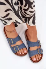 Moteriskos šlepetės su kamštinio pado platforma ir profiliuotu eko zomšo vidpadžiu – tai komforto ir madingos išvaizdos derinys. Du dirželiai su reguliuojamomis sagtimis užtikrina idealų prigludimą, o jų moderni išvaizda atitinka naujausias sezono tendencijas. Puikiai tinka vasaros stiliui, puikiai dera su suknelėmis, sijonais ar kelnėmis, suteikdami kiekvienai aprangai lengvumo. Renkantis dydį, prašome vadovautis dydžių lentele.