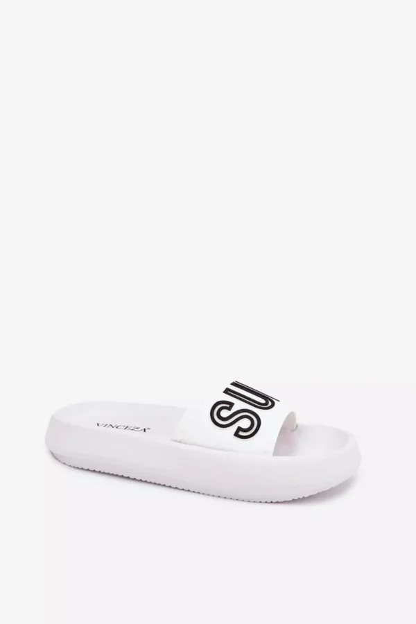 Aprašymas: Vinceza gamina aukštos kokybės ir stilingus damas sandalus su stora „SUMMER“ užrašu. Šie balti sandalai yra puikus pasirinkimas vasaros dienoms, kai norisi suderinti komfortą su modernaus dizaino stiliumi. Pagaminti iš lengvo ir patvaraus putplasčio bei suderinami su vasariška nuotaika, jie yra būtinas aksesuaras kiekvienos moters garderobe.