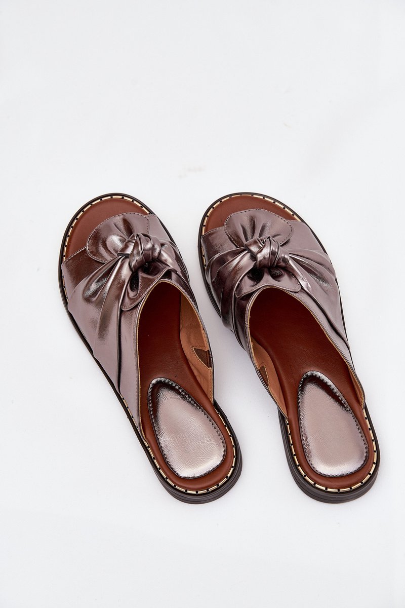 Elegantiškos moteriškos odinės šlepetės su Zazoo 3008 Aged Gold dekoracija
