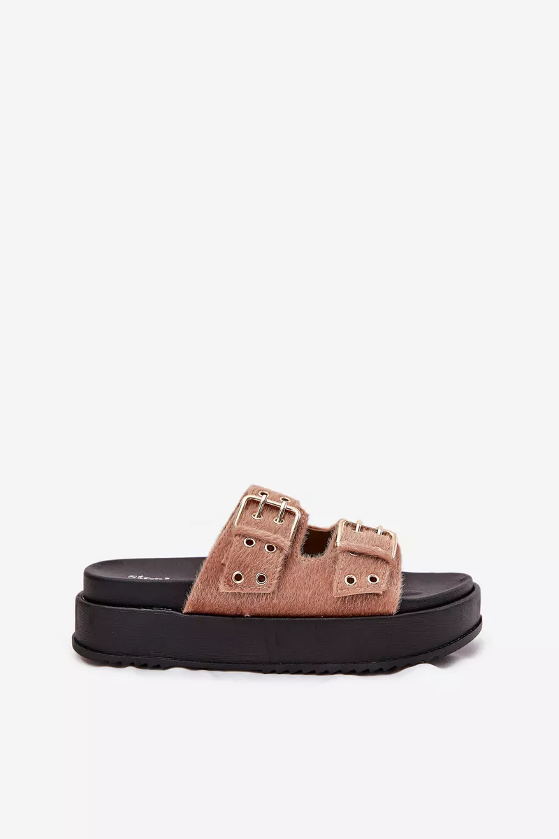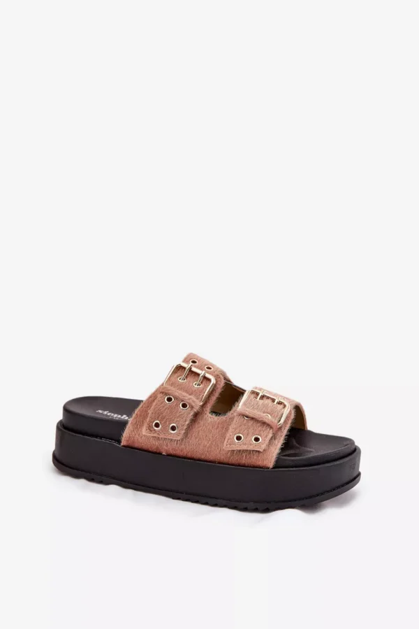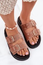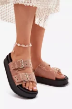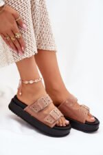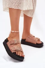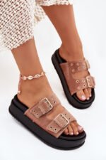 Moteriškos platformos šlepetės yra stilingas pasiūlymas šiltoms dienoms. Šis modelis išsiskiria reguliuojamais dirželiais su auksinėmis sagtimis, kurios užtikrina idealų prigludimą prie pėdos. Puikios vasaros stiliams, jos derina komfortą su elegantiška išvaizda, suteikdamos kiekvienam ansambliui madingą charakterį. Renkatės dydį, prašome vadovautis dydžių lentele.