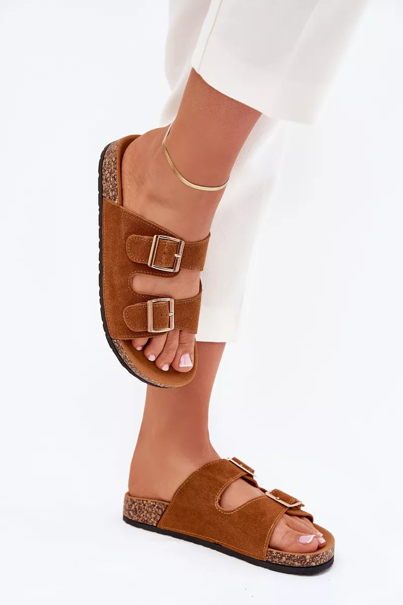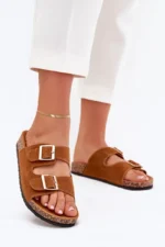 Pasirinkę šiuos čechlius gausite ne tik elegantišką išvaizdą, bet ir nesulyginamą komfortą visai dienai. Jei ieškote madingų ir patogiai pritaikomų čechlių, šis modelis su auksinėmis sagtys ir karamelinės spalvos kontrastais – puikus pasirinkimas jūsų drabužių spintai.