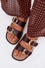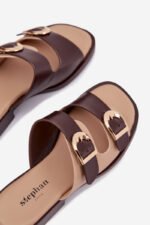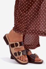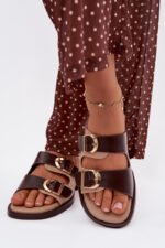 Moteriškos šlepetės su auksiniais sagtimis, smėlio-rudos spalvos „Danelle“
