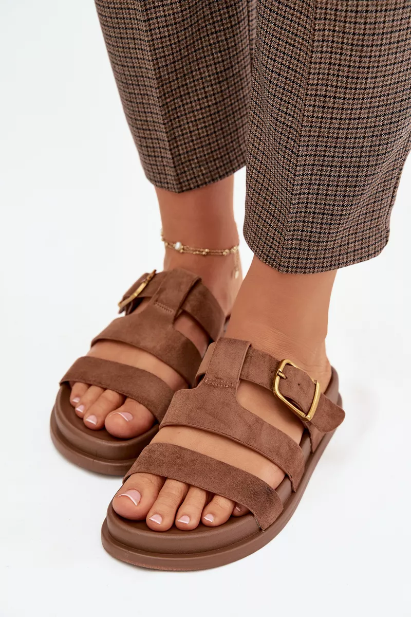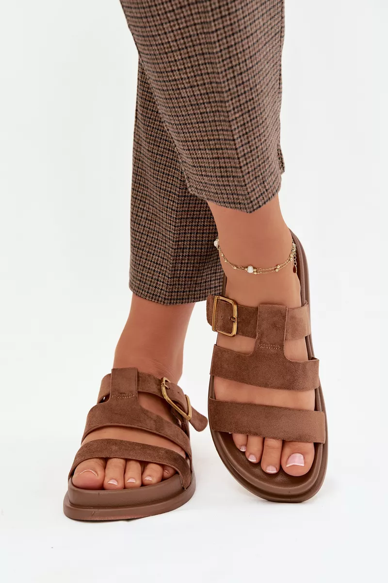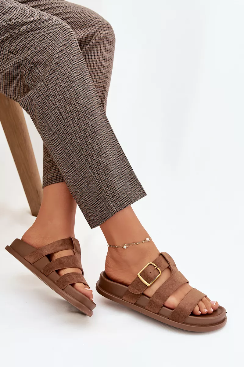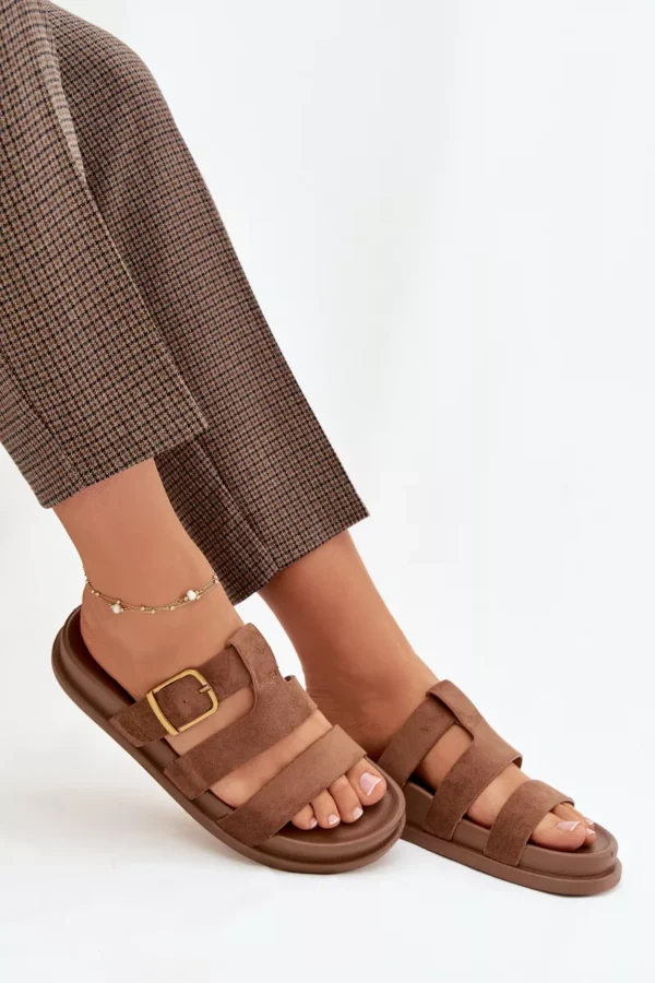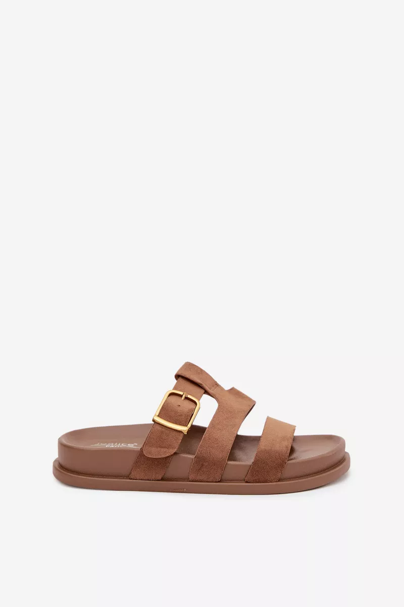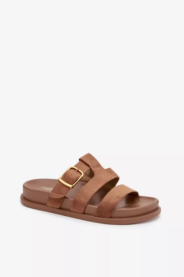 Šios klumpės yra ne tik patogios, bet taip pat stilingos. Zomšinis paviršius suteikia joms elegancijos, o auksinis užsegimas prideda modernių akcentų. Tai puikus pasirinkimas tiek miestui, tiek pajūriui.
