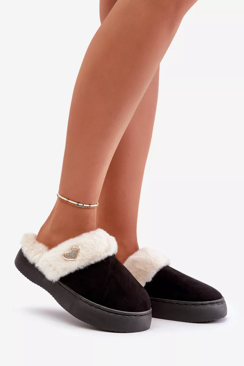Moteriškos šlepetės su kailiu ir dekoratyvine širdute, pristatomos kaip stilingas ir patogus sprendimas šaltesniems vakarams. Šios šlepetės, pagamintos iš minkšto ir jaukaus kailio, užtikrina maksimalų komfortą ir šilumą jūsų kojoms. Be to, įdomios širdies formos dekoracijos suteikia žaismingą akcentą jūsų namų apavo kolekcijai.