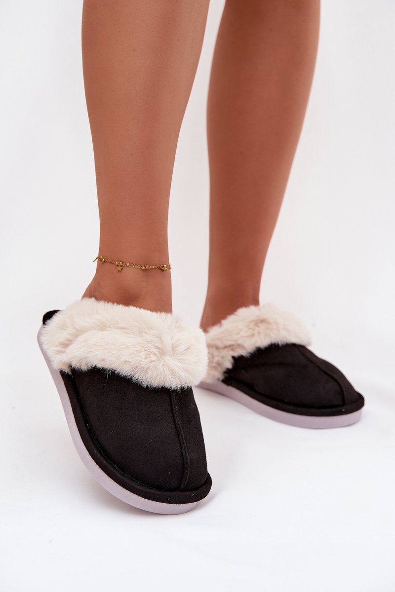 Moteriškos šlepetės su kailiu Juodos Carisse
