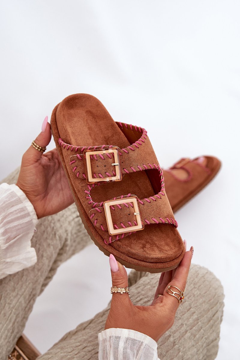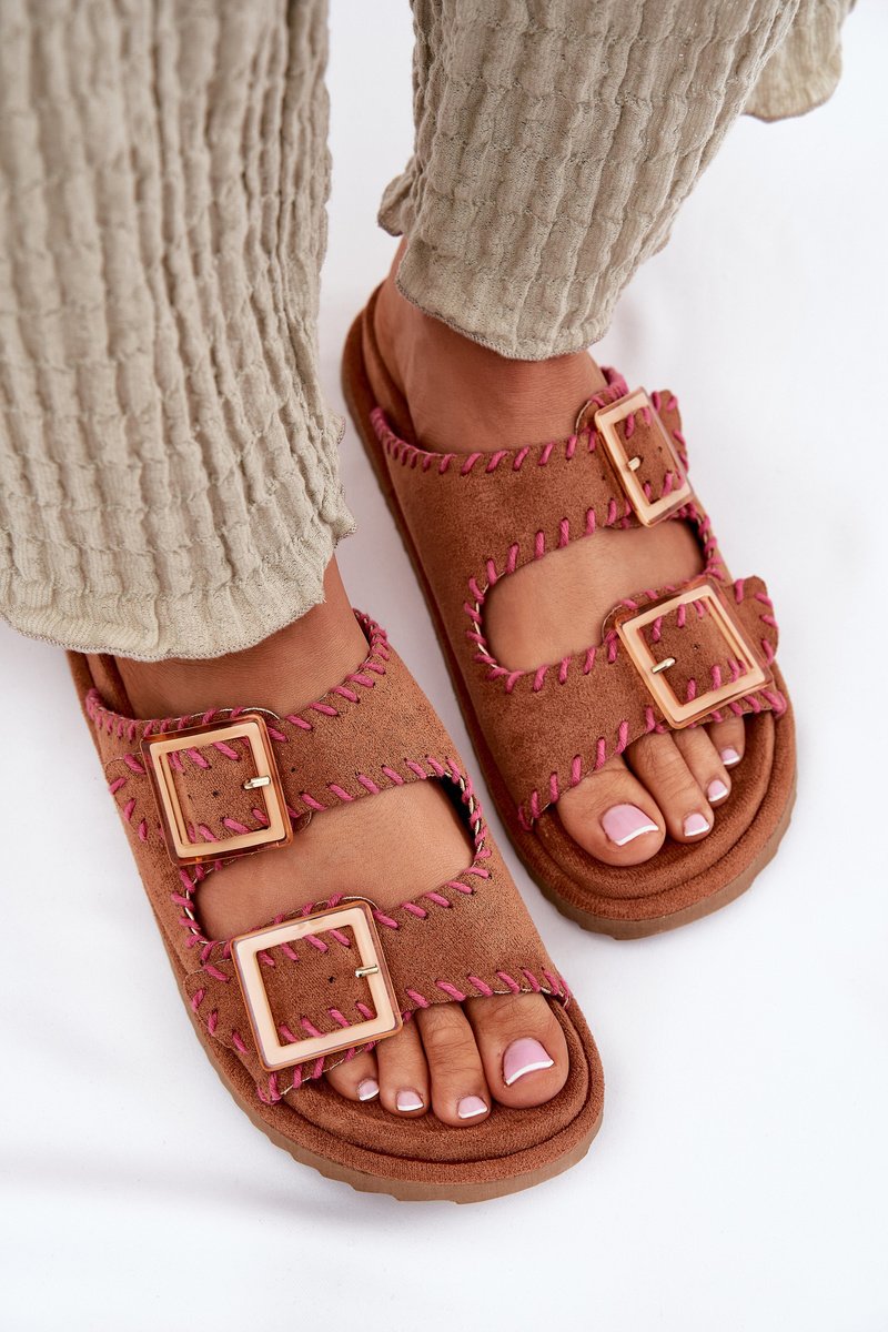 Moteriškos eko zomšos šlepetės, kurios traukia akį dekoratyviniu apdirbimu ir efektingomis sagtimis priekyje. Dėvėjimo komfortą užtikrina profiliuotas vidpadis, puikiai prisitaikantis prie pėdos formos. Šis madingas modelis puikus pasirinkimas vasaros dienoms – idealus tiek miesto stiliui, tiek atostogų išvykoms! Renkantis dydį, prašome vadovautis dydžių lentele.