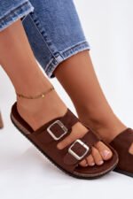 Moteriškos šokolado rudos “Oliena” basutės su sagtimis