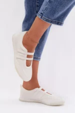 Moteriškos ekologiškos odos balerinos sportiško stiliaus yra patogus ir modernus pasirinkimas kasdieniam nešiojimui. Dvi juostelės ant pėdos vidurio užtikrina geresnį stabilumą ir yra dekoratyvinis akcentas. Lengvas dizainas daro šiuos batelius puikiai tinkamus kasdieniam aprangos deriniui, derinant komfortą su madingu, sportišku stiliumi. Renkantis dydį, prašome remtis dydžių lentele.