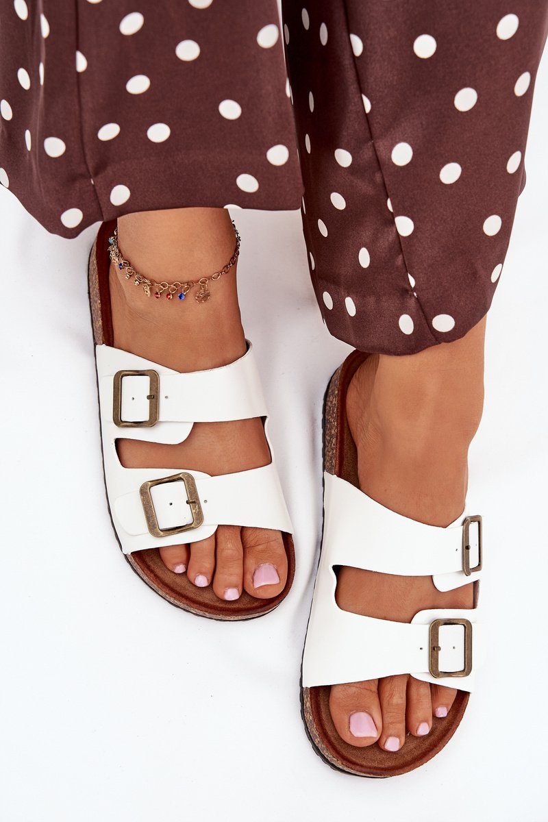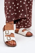 Moteriskos šlepetės su kamštinio pado platforma ir profiliuotu eko zomšo vidpadžiu – tai komforto ir madingos išvaizdos derinys. Du dirželiai su reguliuojamomis sagtimis užtikrina idealų prigludimą, o jų moderni išvaizda atitinka naujausias sezono tendencijas. Puikiai tinka vasaros stiliui, puikiai dera su suknelėmis, sijonais ar kelnėmis, suteikdami kiekvienai aprangai lengvumo. Renkantis dydį, prašome vadovautis dydžių lentele.