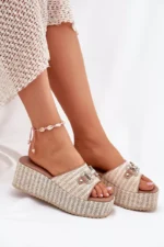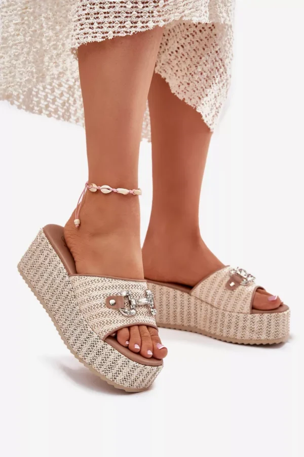 “Damski Sandalai Na Platforma Su Pletka Ir Dekoracija Bežovi Isolene” – šie moteriški sandalai puikiai tiks vasaros sezonui. Jie išsiskiria elegantiško dizaino ir patogumo deriniu, kuris nepaliks abejingų. Originalios pynės suteikia sandaliukams unikalumo, o smulkios dekoracijos prideda žavesio ir išskirtinumo. Minkšta padas garantuoja komfortą visą dieną.