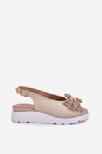 Moterims skirti natūralios odos sandalai ant platformos yra elegantiškas ir patogus pasirinkimas vasaros dienoms. Užsegami sagtimi su reguliuojamu dirželiu, jie puikiai priglunda prie kojos. Priekyje yra žavinga kokardėlė su auksiniu aksesuaru, suteikiančia subtilaus žavesio. Jie puikiai dera prie suknelių, sijonų ar kelnių, derindami patogumą ir madingą išvaizdą. Idealiai tinka kasdienai ir ypatingoms progoms. Renkantis dydį, prašome vadovautis dydžių lentele.
