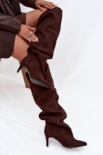 Mavilla aulinukai yra pasiūlymas moterims, kurios vertina eleganciją ir klasiką šiuolaikiškame leidinyje. Pagaminti iš minkšto eko zomšos, šilto šokolado atspalvio, jie atrodo nepaprastai stilingai ir moteriškai. Aukštas aulas, siekiantis kelius, gražiai prailgina kojas, o plona batų linija subtiliai pabrėžia figūrą. Tai modelis, puikiai derinantis madingą išvaizdą su naudojimo patogumu.
