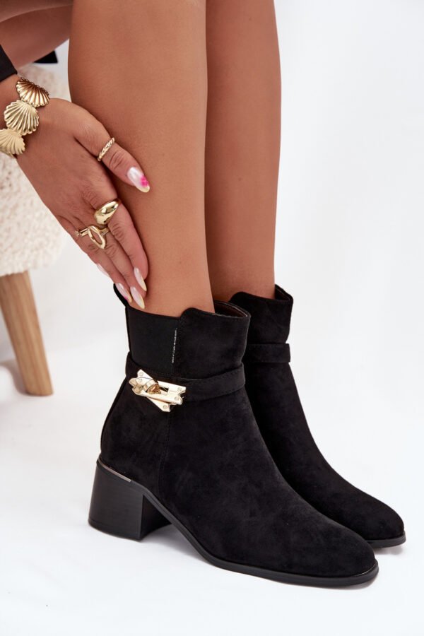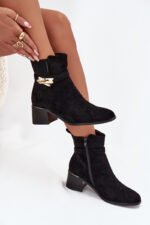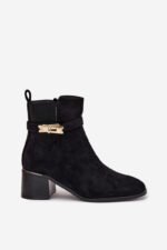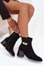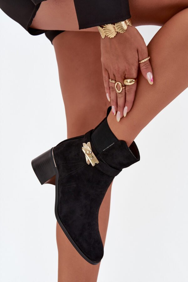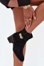 Moteriški aulinukai, pagaminti iš eko zomšos, yra puikus pasirinkimas vėsesnėms dienoms. Montuojami ant stačiakampio formos kulno, jie užtikrina stabilumą ir patogumą visą dieną. Interjeras, apšildytas batų flaneliu, garantuoja šilumą ir komfortą. Apvalūs kojų pirštai. Atvartėlis, papuoštas juostele su auksine apdaila, suteikia išskirtinio akcento, todėl jie puikiai papildys elegantiškus žiemos derinius. Rinkdamiesi dydį, prašome vadovautis dydžių lentele.