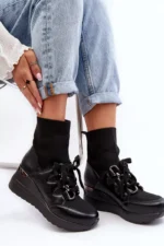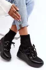 Moteriški sportinio stiliaus aulinukai, pagaminti iš eko odos ir tekstilės derinio. Montuojami ant platformos. Kojinės formos aulas. Įsispiriamas modelis su papildomu suvarstymu. Suapvalinti priekiai. Sustiprinta kulno dalis. Minkštas, eko odos vidpadis užtikrins komfortą naudojimo metu. Pasirinkdami dydį, vadovaukitės dydžių lentele.