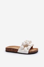 Klasikiniai moteriški šlepetukai ant masyvios, kamštinės platformos. Priekyje yra papuošalai. Šiek tiek profiliuotas vidpadis yra patogus naudoti net visą dieną. Nedelskite ilgiau ir įsigykite šiandien! Būtinai turėtumėte juos turėti! Rinkdamiesi dydį, vadovaukitės dydžių lentelės.