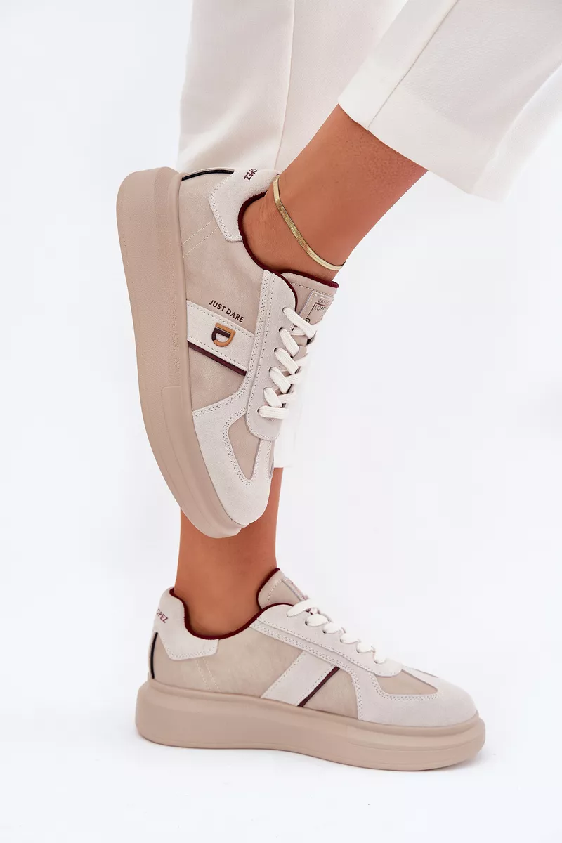 Svajojate prasiskverbti į pasaulį, kur mados mantra yra išreikšta kasdieniame apave? Daniel Lopez Just Dare SS2D4003 beige platforminiai kedai yra jūsų atsakymas. Permainos įvaizdyje su šia avalyne yra ne tik garantuotos, bet ir užtikrina, kad prie senos garderos pridersite naujus štrichus.