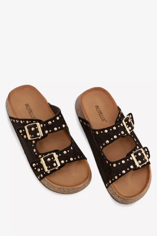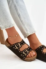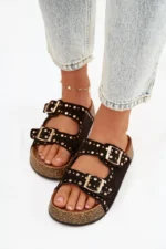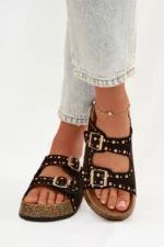 Moteriškos ekologiškos odinės basutės yra stilingas ir patogus pasirinkimas šiltoms dienoms. Kamštinė platforma užtikrina patogumą ir natūralų vasarišką jausmą. Modelis papuoštas auksiniais sagtimis ir kniedėmis, kurios suteikia jam madingą, išskirtinį akcentą. Šie sandalai puikiai tinka kasdieniniams aprangos deriniams, dera tiek su suknelėmis, tiek su kasdieniais ansambliais. Renkantis dydį, prašome remtis dydžių lentele.