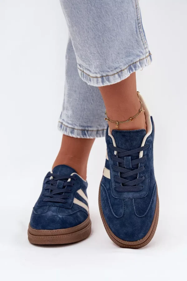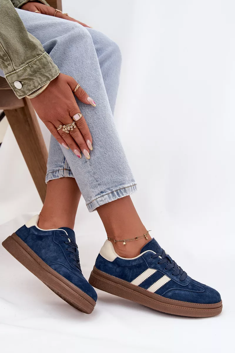 Moterų suede sportiniai bateliai su platforma, tamsiai mėlyni Sylviona