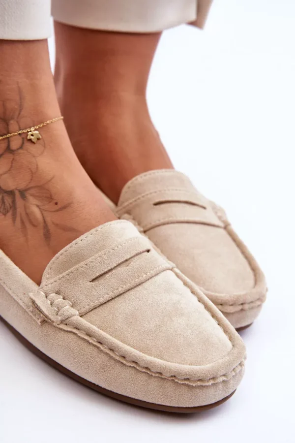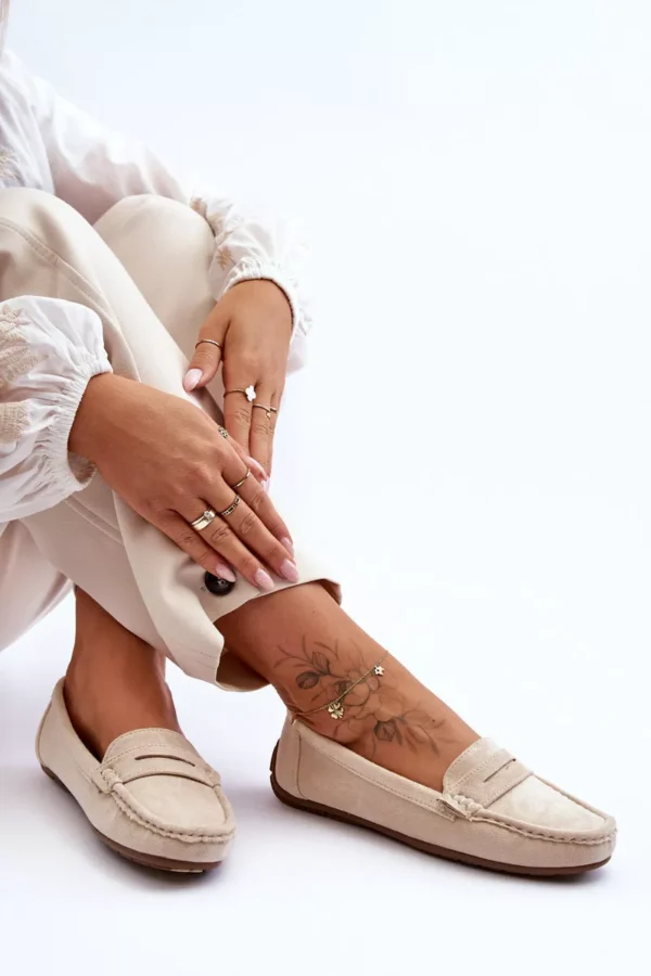 Bežinė spalva yra nesenstančio stiliaus standartas, leidžianti derinti šias mokasinas su daugybe skirtingų garderobo elementų. Tai spalva, kuri padeda kurti elegantišką išvaizdą, bet tuo pačiu yra lengva ir neįpareigojanti, puikiai tinkanti bet kokiai progai.