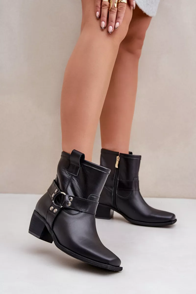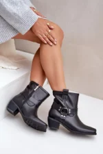 Moteriški natūralios odos aulinukai yra stilingas modelis, puikiai tinkantis vėsesnėms dienoms. Įmontuoti ant stabilaus stulpo formos kulno, jie užtikrina patogumą ir subtiliai pailgina figūrą. Užsegami užtrauktuku, kad būtų lengva apsiauti, o apvalūs priekiai su kvadratiniu padu suteikia jiems modernumo. Viršutinę dalį puošia dirželiai su dekoratyviniu elementu, suteikiančiu elegancijos ir pritraukiančiu dėmesį. Šie išskirtiniai aulinukai puikiai tiks tiek prie kasdienių, tiek prie formalesnių derinių, derindami patogumą su madingu dizainu. Pasirinkdami dydį, prašome vadovautis dydžių lentele.
