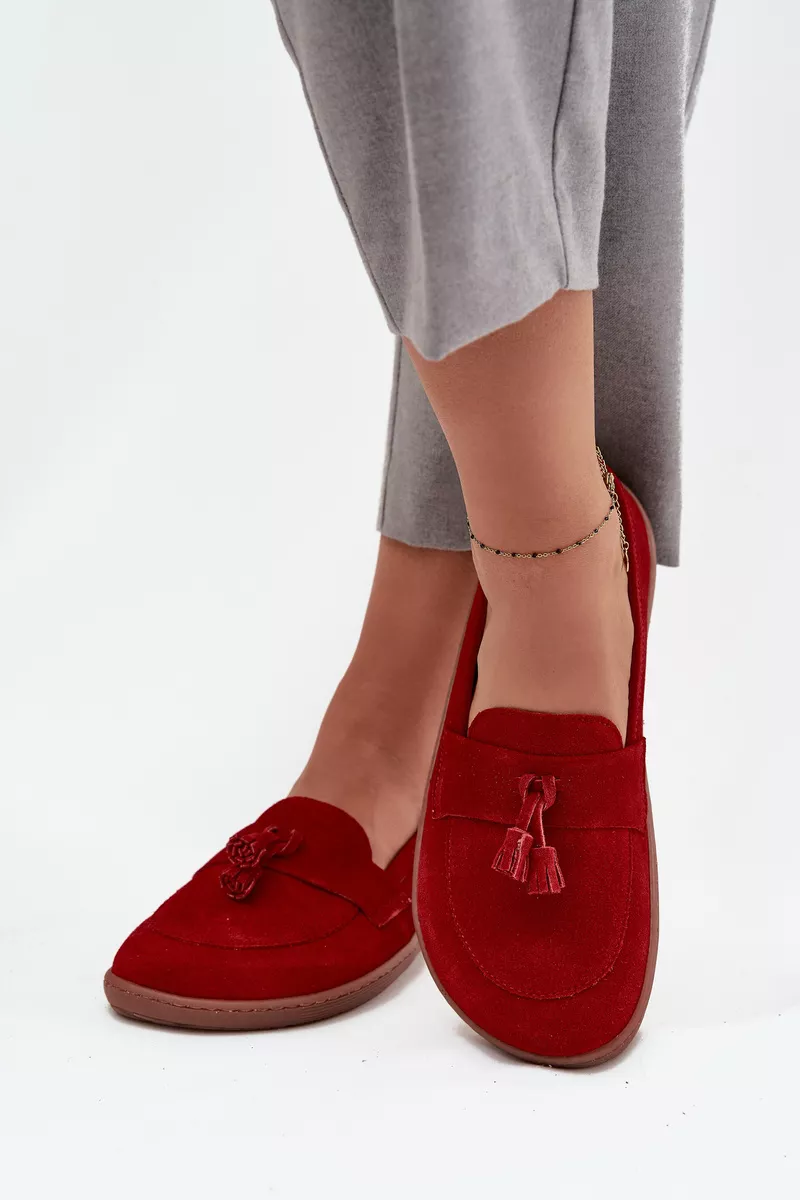 Natūralios odos zomšiniai “barefoot” tipo mokasinai Zazoo 322 Red