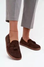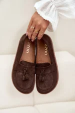 Šokolado atspalvio “Zazoo 322” basikų tipo mokasinai moterims yra puikus pasirinkimas toms, kurios vertina natūralų komfortą bei judėjimo laisvę. Šie mokasinai yra gaminami iš aukštos kokybės odos, kuri pasižymi minkštumu ir natūraliu jausmu ant pėdų. Prisitaikanti forma leidžia mėgautis lengvumo ir patogumo pojūčiu visą dieną. Išskirtinė šokoladinė spalva bei dekoruotos priekio juostos su dviem sagtimis suteikia batams subtilų elegancijos ir stiliaus touchą.