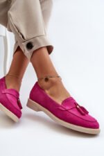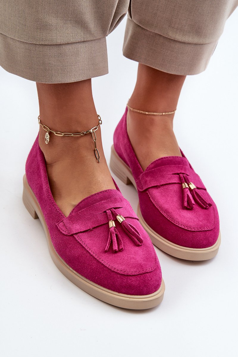 Moteriski mokasinai, pagaminti iš natūralaus zomšos, pasižymi plokščiu kulnu, kuris užtikrina stabilumą vaikštant. Priekis yra papuoštas subtiliomis kutais, kurie suteikia subtilumo ir stiliaus. Profiluotas vidpadis suteikia papildomo komforto ilgai nešiojant. Tai puikus pasirinkimas tiems, kurie vertina tiek madingą išvaizdą, tiek naudojimo patogumą. Rinkdamiesi dydį, prašome vadovautis dydžių lentele.