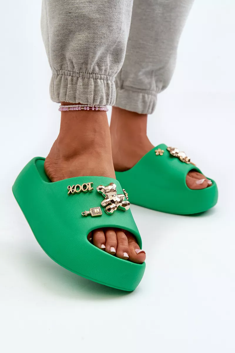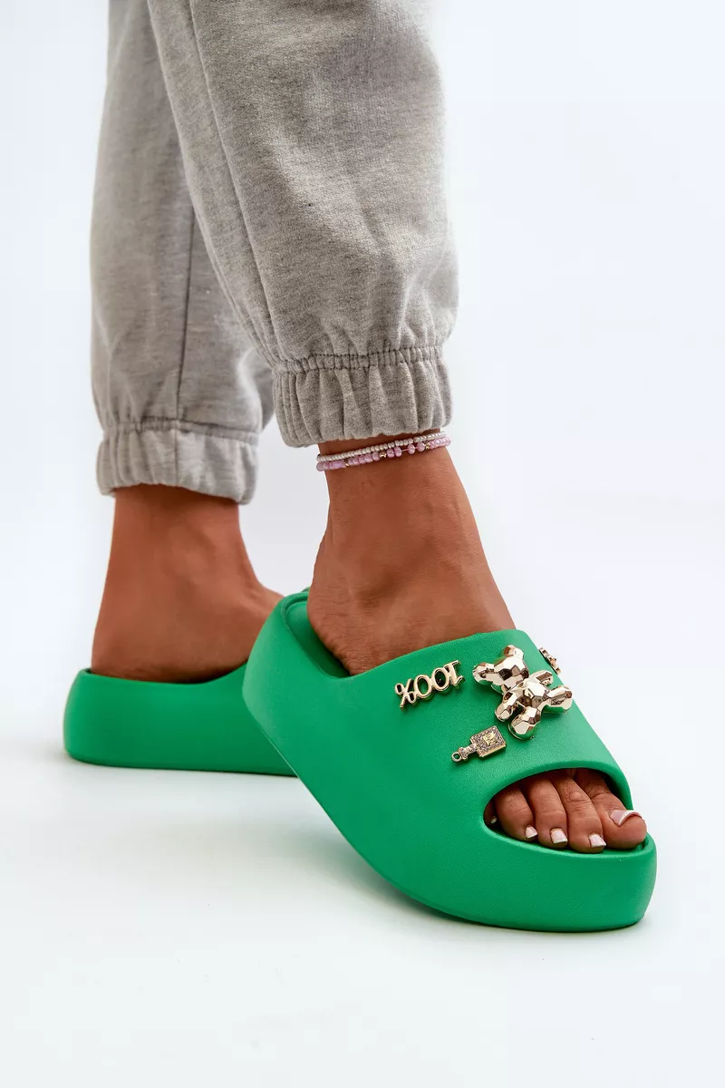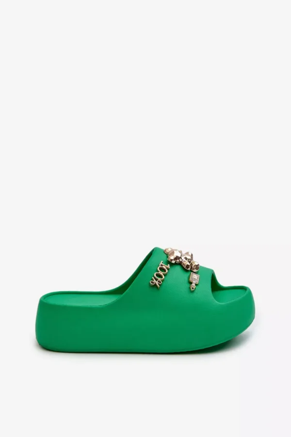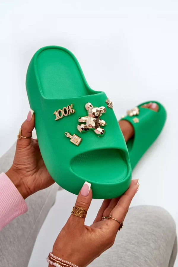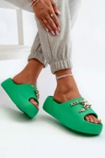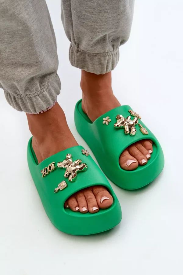 Šios šlepetės puoštos akį traukiančiais dekoratyviniais elementais, kurie suteikia joms ypatingo žavesio. Ryškūs dekorai padės išsiskirti, o šlepečių dizainas – jaustis komfortiškai visą dieną. Jos puikiai tinka tiek prie vasarinių suknelių, tiek prie laisvalaikio drabužių.