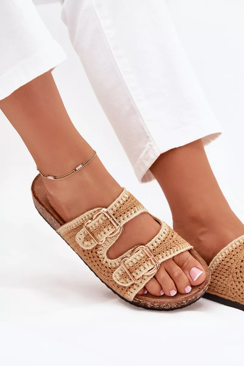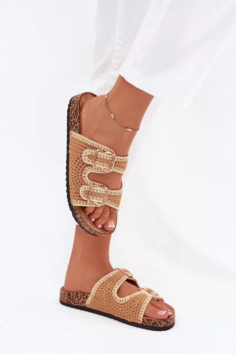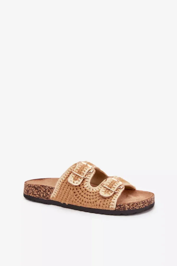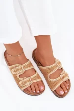 Suteikite savo garderobui unikalų akcentą su šiomis šlepetėmis, turinčiomis dvi auksines sagtis. Jos ne tik suteikia papildomą blizgesį, bet ir prisideda prie bendro nedidelio gaminio elegancijos. Pasiūtos iš ekologiškos zomšos, šios šlepetės užtikrina, kad jūs ne tik atrodysite gerai, bet ir nekenksite aplinkai.