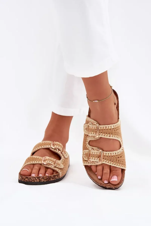 “Rankų darbo moteriškos šlepetės su auksinėmis sagtimis Camel Fenira” – tai nepakeičiama elegancija ir komfortas viename gaminyje. Šios šlepetės, pasižyminčios unikaliu dizainu, puikiai derins prie jūsų kasdieninės vasaros aprangos, suteikdamos šiai subtilumo ir prabangos atspalvį. Natūralaus korio platforma užtikrina stabilumą ir patogumą, todėl jūsų pėdos visą dieną jaučiasi pavargusios.